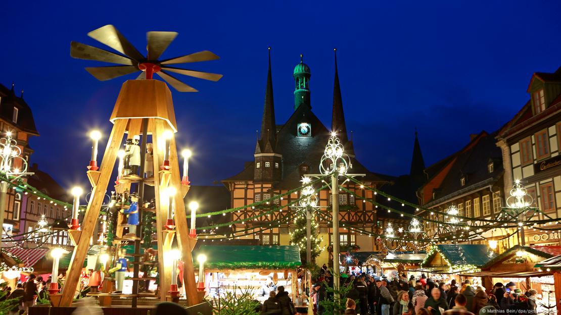 Në Wernigerode, një piramidë e lartë e Krishtlindjeve mahnit vizitorët e shumtë.