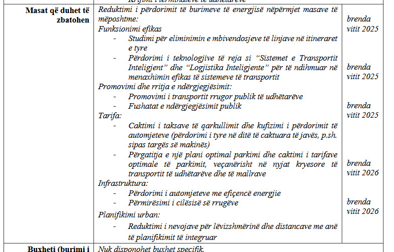 Plani kombëtar për klimën dhe energjinë parashikon ndër të tjera zbatimin e disa masave për reduktimin e përdorimit të burimeve të energjisë, si më poshtë: