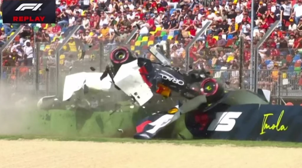 Duke udhëtuar me një shpejtësi marramendëse, makina e tij Red Bull humbi kontrollin dhe u përplas fuqishëm me barrierat mbrojtëse, duke u copëtuar në disa pjesë – një skenë që ngjante si një shpërbërje kartoni në ajër.