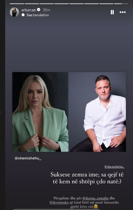 Arbana ka shpërndarë në Story e saj postimin e Xhemi Shehut.