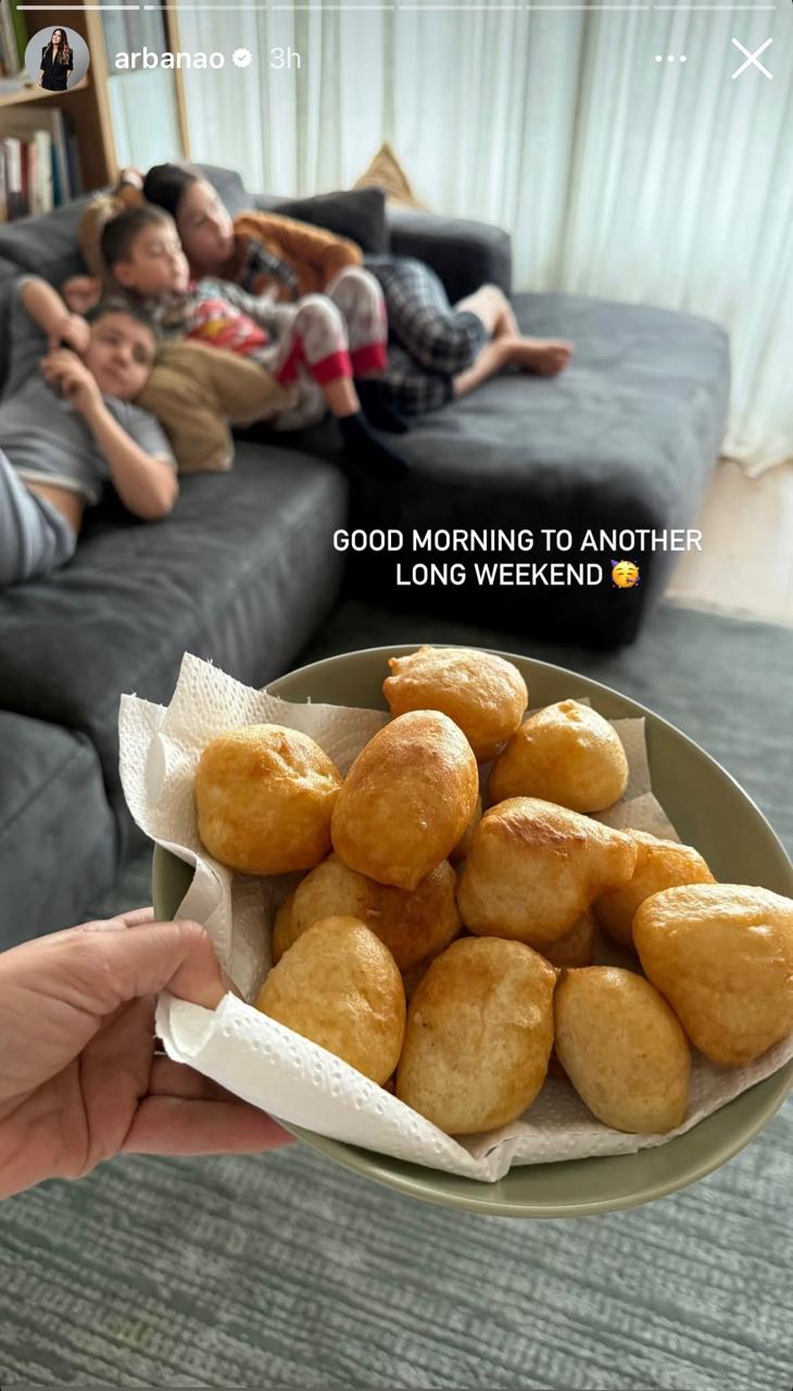 Arbana pasi ka publikuar foto të fëmijëve dhe petullave të mëngjesit që ka përgatitur për to, ka publikuar në InstaSTORY edhe një foto me shumë fustane ndërsa krahas fotos ajo shkruan: Kthimi në televizion do të thotë kthim te veshjet e lezetshme.