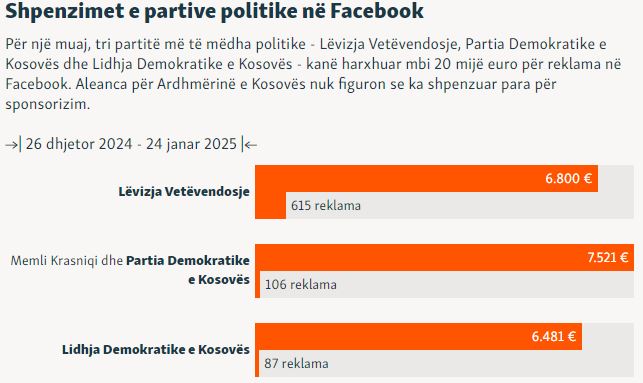 Njësoj, edhe disa parti politike – për 30 ditë ato kanë shpenzuar mbi 20.000 euro.