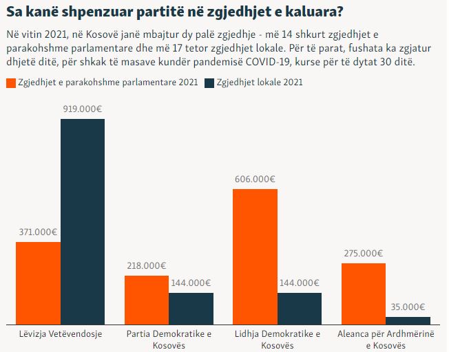 Fushata zgjedhore në Kosovë është një garë milionëshe. Ndonëse partitë politike janë të obliguara t’i raportojnë shpenzimet, vëzhguesit e zgjedhjeve ngrenë shqetësime për transparencën e donacioneve që ato marrin.