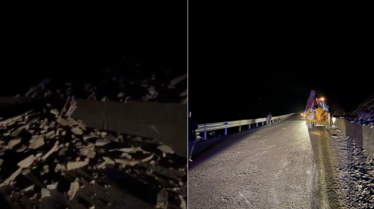 Sipas raportimeve nga terreni, për shkak të lagështisë, një sasi gurësh ka renë nga mali duke bllokuar këtë aks rrugor më shumë se një orë mbrëmë.