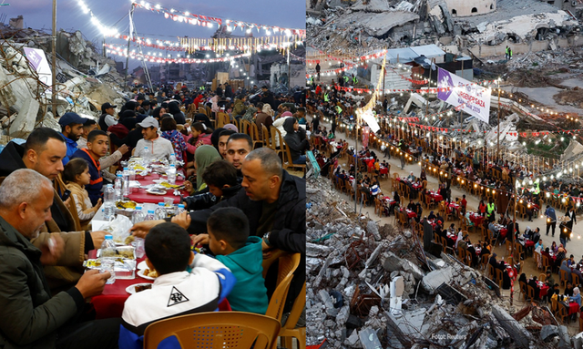 GAZA– Iftari i parë i muajit të Shenjtë të Ramazanit është pritur me tryezat plot e me harmoni mes njerëzve edhe në një vend të rrënuar nga lufta.