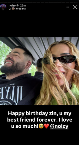 Në një ditë të veçantë si kjo e sotmja, Noizy ka publikuar në Instastory dy urime, njëri nga ruimet mbetet i biznesmenit njëkohësisht dhe aktori i mirënjohur Blerim Destani dhe urimin tjetër e kishte nga kolegia e tij, Loredana.