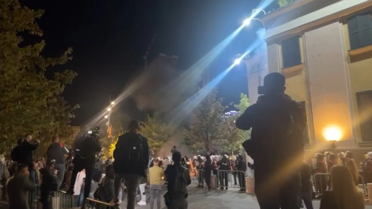 Burimet bëjnë me dije se teksa u hodhën molotovë në drejtim të bashkisë, këmba e njërit nga efektivët për pak sa nuk u përfshi nga flakët.