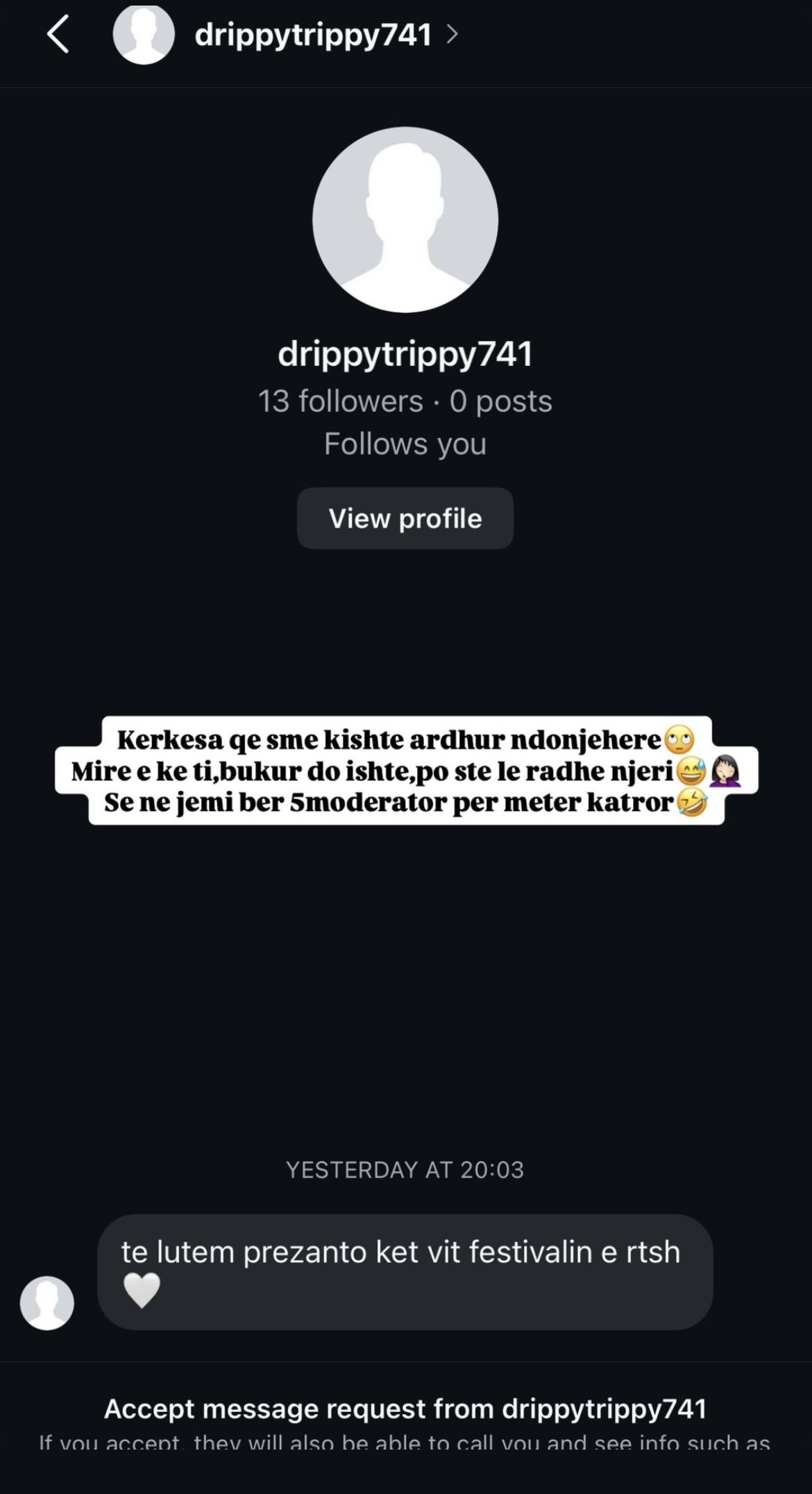 “Të lutem prezanto ket vit festivalin e rtsh.”-kështu shkruhet në mesazhin që ka marrë Einxhel.