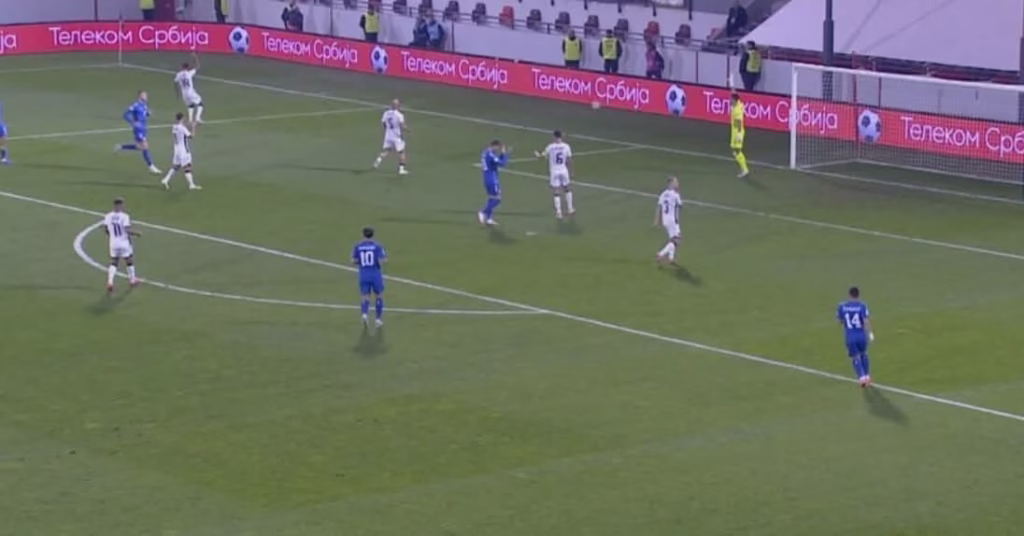 Shqipëria ka shënuar në minutën e fundit të pjesës së parë me anë të Rei Manajt, duke e mbyllur në avantazh fraksionin e parë të lojës.