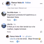 Përveç deklaratës politike, Noka është përfshirë edhe në përplasje me komentues në profilin e tij. Në disa prej përgjigjeve, ai ka përdorur tone të ashpra dhe shprehje banale, duke shkaktuar reagime dhe polemika në rrjet.