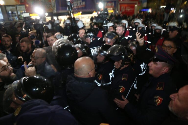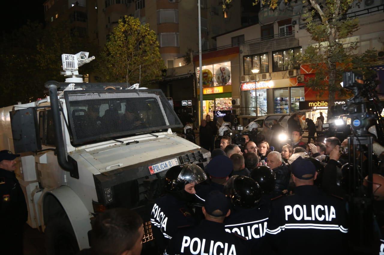 Deputetët e PD u pozicionuan përpara autobotit me ujë tek Sheshi Willson dhe nuk e lejuan atë të lëvizte.