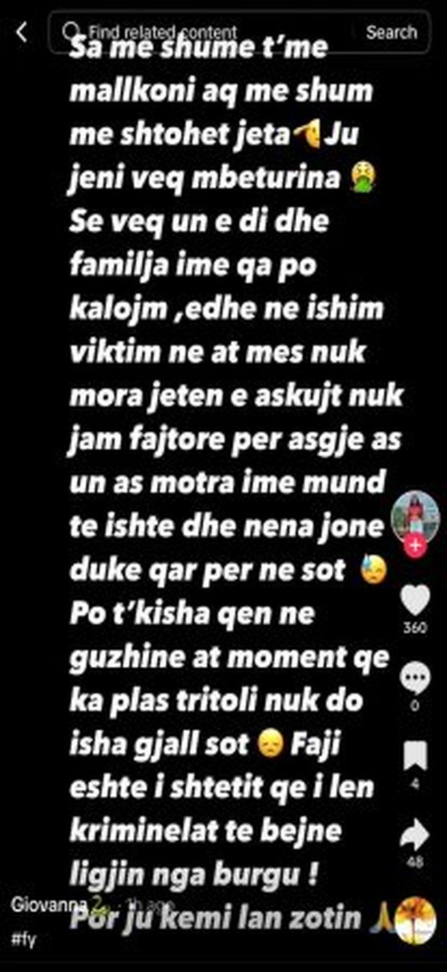 Po të kisha qenë në kuzhinë atë moment që ka plasur tritoli nuk do isha gjallë sot. Faji është i shtetit qe i le kriminelët të bëjnë ligjin nga burgu. Por ju kemi lan Zotin”, -shkruan Xhovana në reagimin e saj.