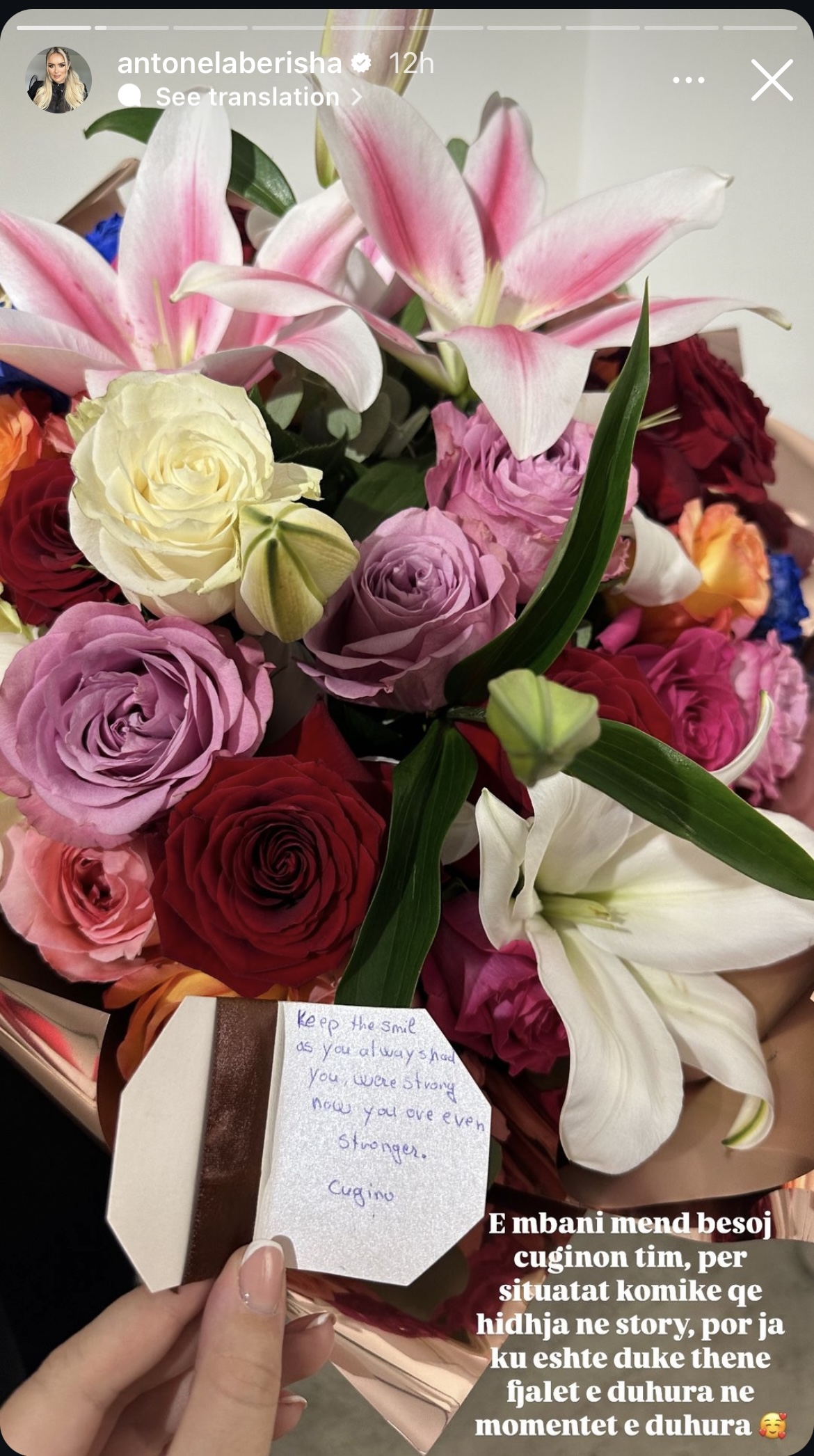 Përmes shumë InstaStoryve, Antonela Berisha ka treguar dhjetëra buqeta me lule që kanë marrë pas vendimit të gjykatës.