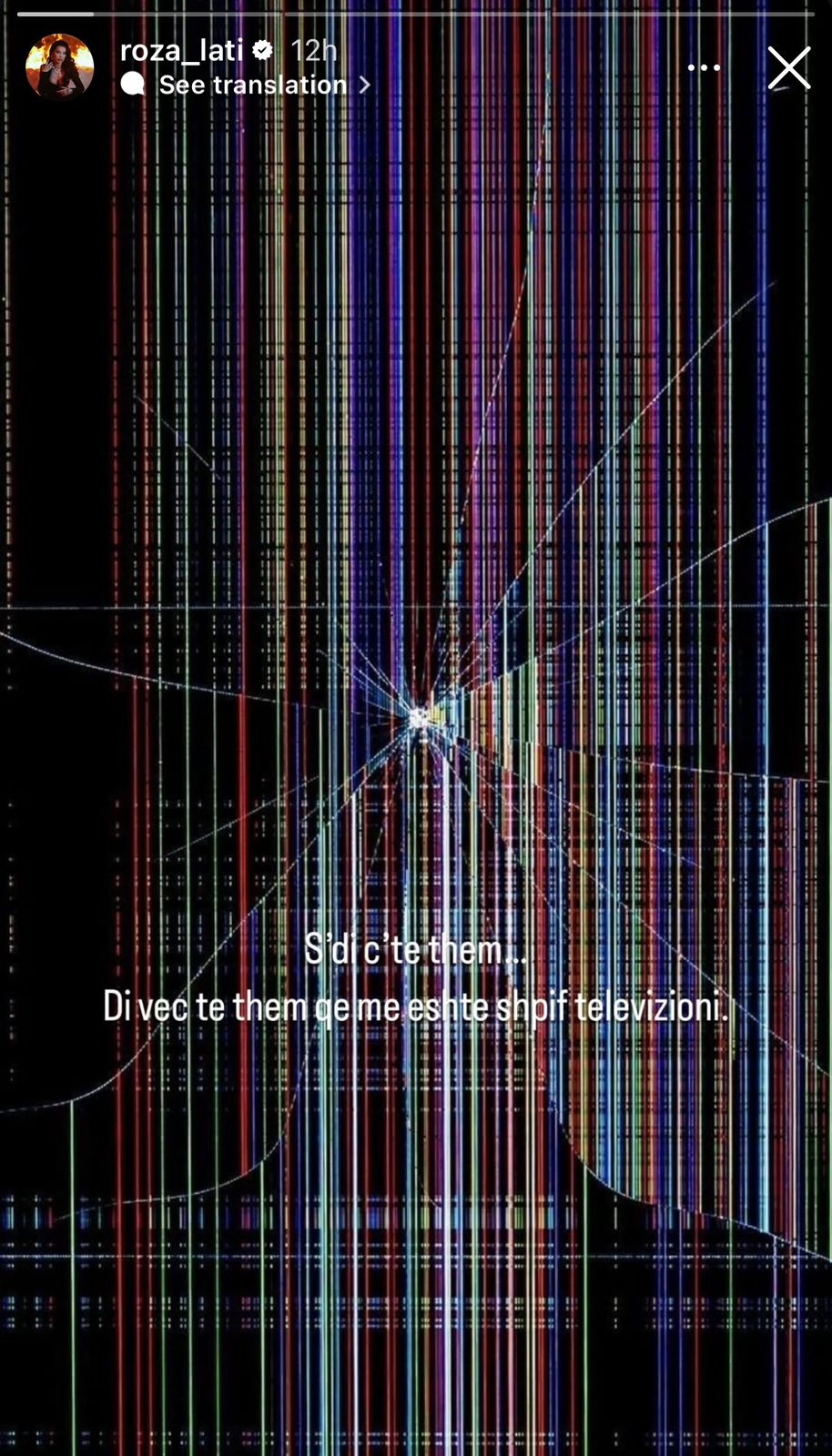 Në Instastory ku shfaqet një xham i thyer, Roza mbi këtë pamje shkruan: S’di ç’të them… Di veç të them që më është shpif televizioni.