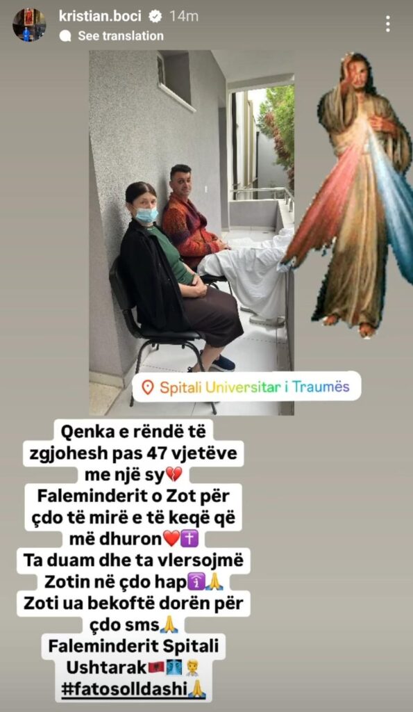 “Qenka e rëndë të zgjohesh pas 47 vjetëve me një sy. Faleminderit o Zot për çdo të mirë e të keqe që më dhuron. Ta duam dhe ta vlersojmë Zotin në çdo hap. Zoti ua bekoftë dorën për çdo sms. Faleminderit Spitali Ushtarak”, shkruan Boçi.