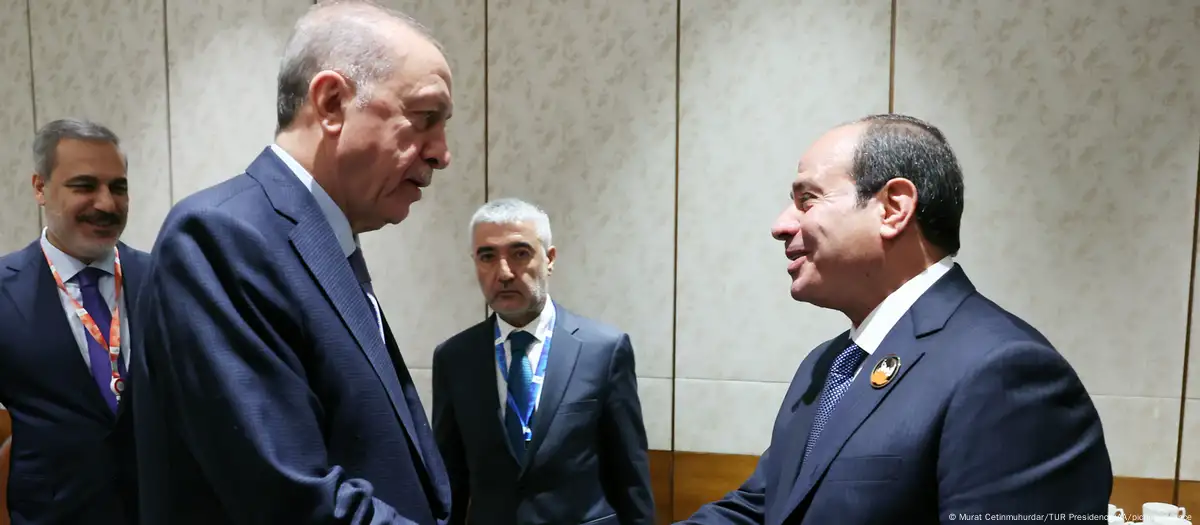 Por ato kohë tani kanë kaluar. Al-Sisi dhe Erdogani u takuan në vitin 2022 gjatë Kampionatit Botëror në Katar dhe shtrënguan duart. Fotoja virale u pasua me një “diplomaci tërmeti”. Pas një tërmeti shkatërrues në Turqi në vitin 2023, Al-Sisi telefonoi menjëherë me Erdoganin, ndërsa pak ditë më vonë, ministri i Jashtëm egjiptian Samih Shukri vizitoi zonën e prekur nga tërmeti shkatërrues. Në shtator 2023, të dy presidentët u takuan gjatë samitit të G20 në Indi. Në shkurt 2024, Al-Sisi priti Erdoganin në Kajro dhe të dy udhëheqësit buzëqeshën para kamerave. Erdogan papritmas ndryshoi retorikën e tij dhe “vrasësin” e quajti “Vëllai im i respektuar”.