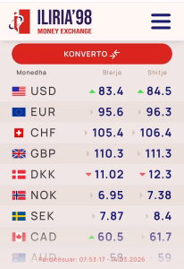 Sipas kursit të këmbimit, një Dollari Amerikan blihet me 83.4 lekë dhe shitet me 84.5 lekë.