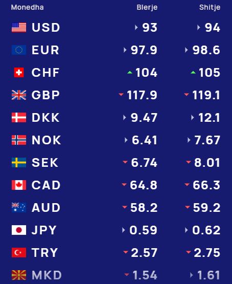 Ndërkohë monedha evropiane euro do blihet me 97.9 lekë dhe do shitet me 98.6 lekë.