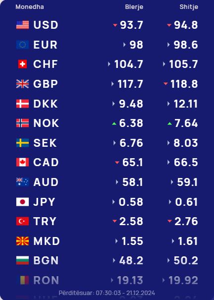 TIRANË– Në tregun e këmbimit valutor shqiptar sot një dollar do blihet me 93.7 lekë dhe do shitet me 94.8 lekë.