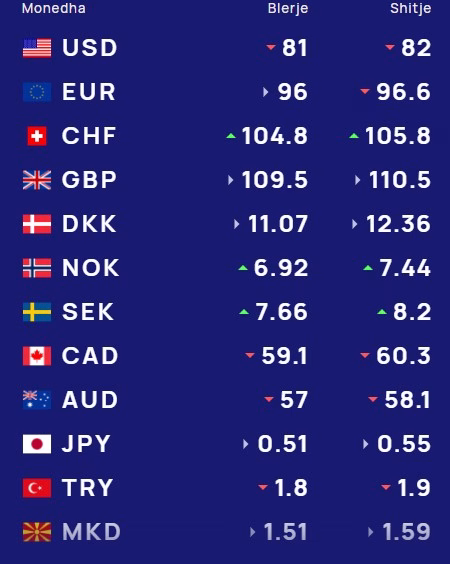 Ndërkohë monedha evropiane euro do blihet me 96 lekë dhe do shitet me 96.6 lekë.