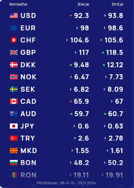 Ndërsa paundi britanik do blihet me 117 lekë dhe do shitet me 118.5 lekë.