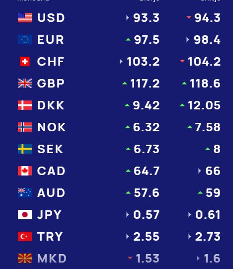 Ndërkohë monedha evropiane euro do blihet me 97.5 lekë dhe do shitet me 98.4 lekë.