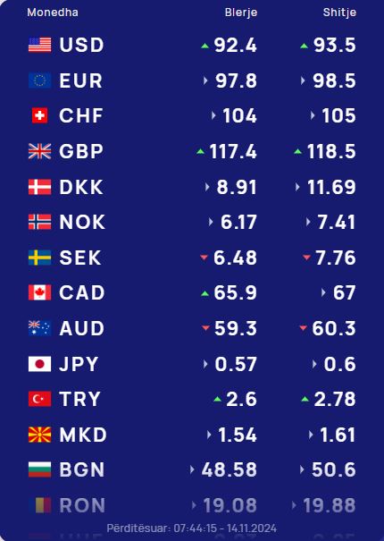 Këmbimi valutor për ditën e sotme, 14 Nëntor 2024