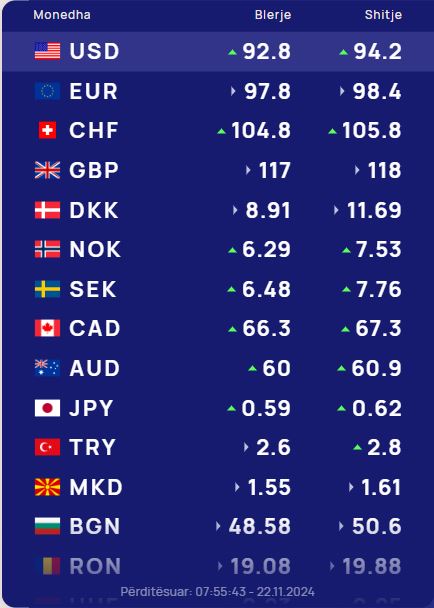 Ndërkohë monedha evropiane euro do blihet me 97.8 lekë dhe do shitet me 98.4 lekë.