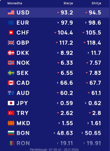 Këmbimi valutor për ditën e sotme 25 Nëntor 2025, me sa shiten dhe blihen euro e dollari