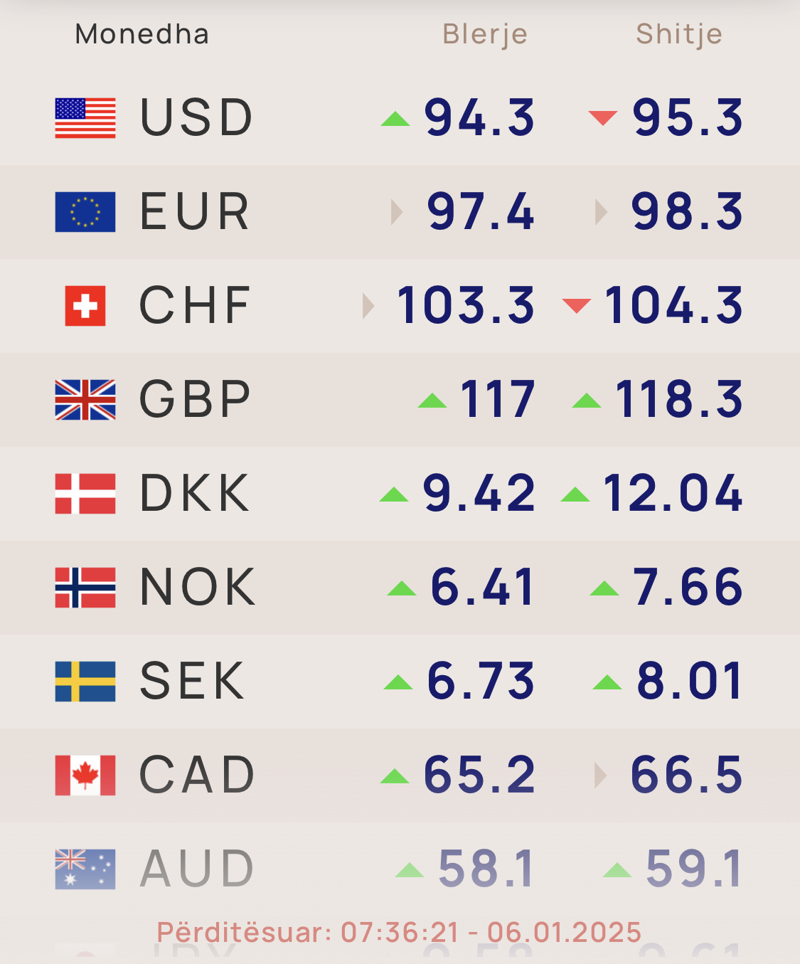 Këmbimi valutor për ditën e sotme, 6 Janar 2025