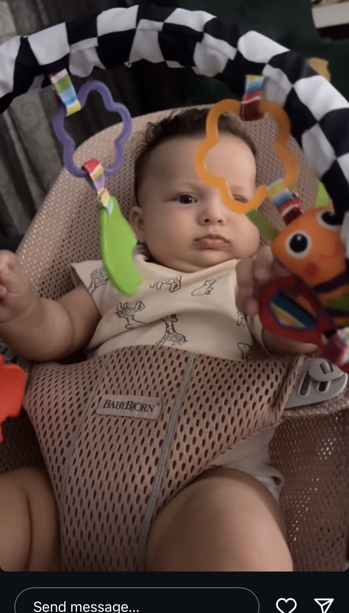 Para pak minutash Kiara ka publikuar një video të shkurtër, teksa Luna luan me disa nga lodrat varur mbi karrocën ku ajo qëndron.