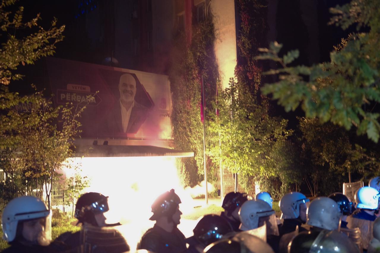 Protestuesit të udhëhequr nga Gazment Bardhi dhe Flamur Noka ishin vendosur tek selia e PS-së. Aty ata kanë hedhur në drejtim të godinës bomba molotov në mënyrë të përsëritur.