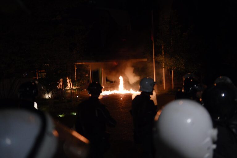 Për pak e ‘shpërthyen’ me molotov godinën e PS, policia hedh gaz lotsjellës dhe i shpërndan.