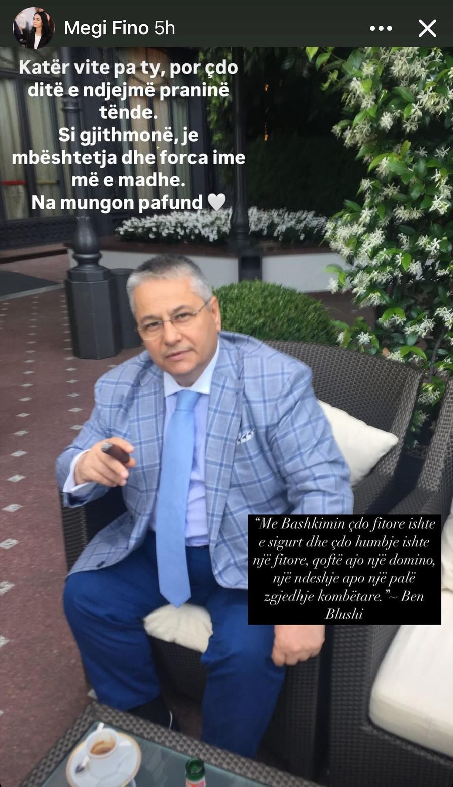Megi ka publikuar edhe një shprehje të Ben Blushit për Bashkim Finon.