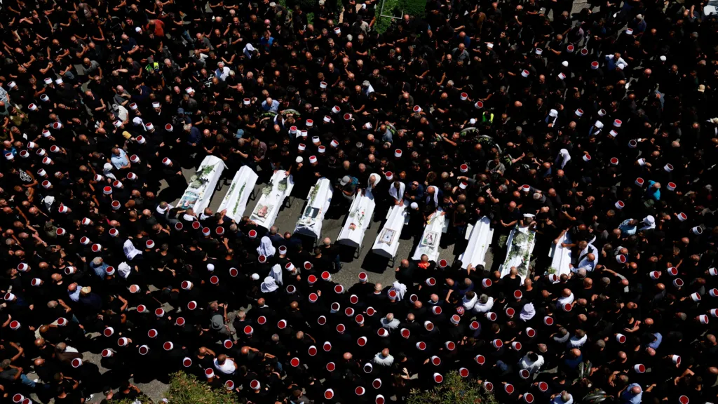 Anëtarët e komunitetit Druze qanin teksa mbanin arkivole përmes Majdal Shams, ndërsa njerëz të tjerë bërtisnin me zemërim ndaj ministrave të qeverisë së vendit, shkruajnë mediat e huaja.