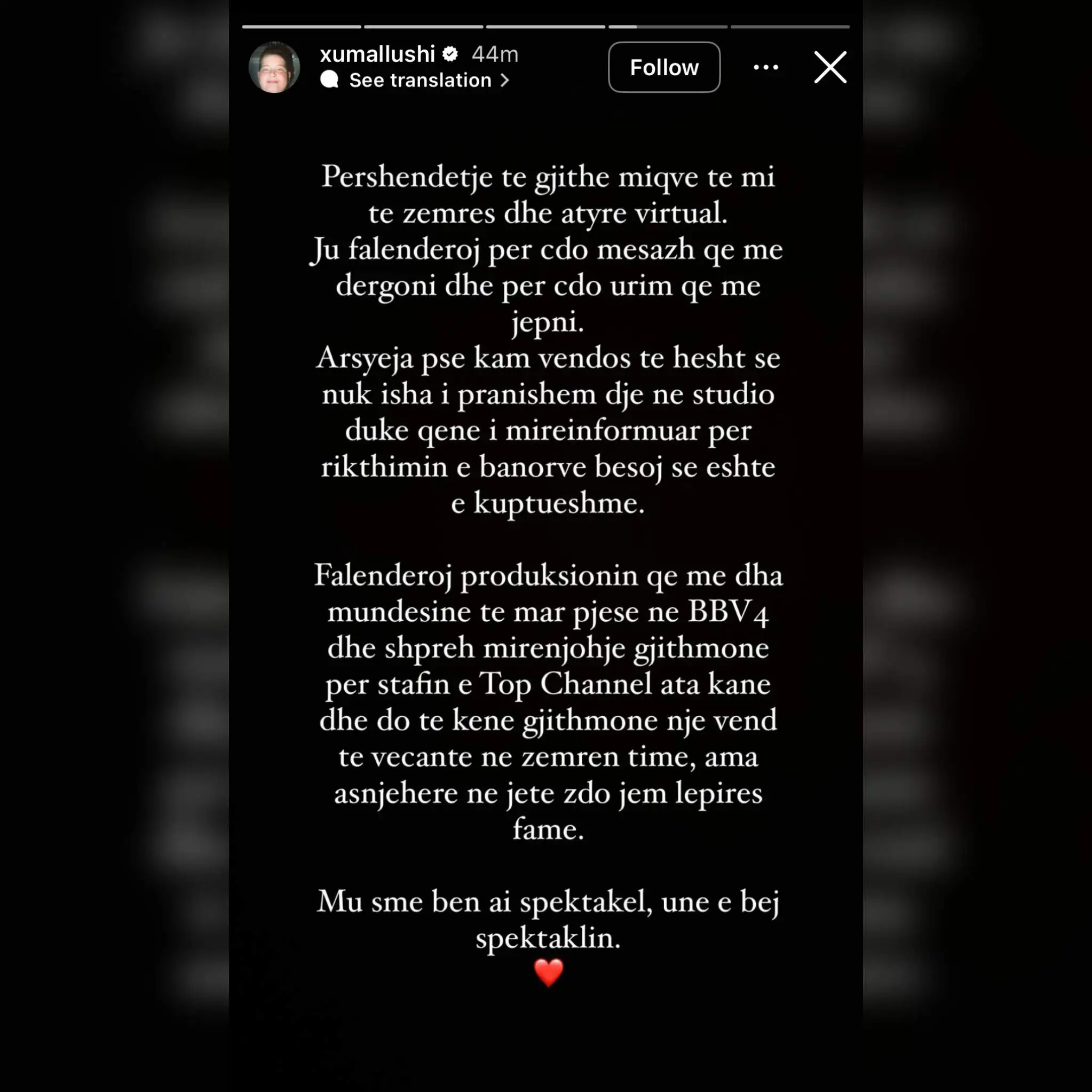 TIRANË– Xum Allushi, një nga ish-banorët e Big Brother VIP4, ka reaguar përmes njëë postimi në Instagram pas mungesës së tij në spektaklin e së shtunës, duke sqaruar arsyet e heshtjes së tij.