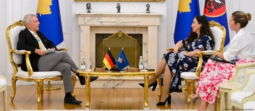 Presidentja e Kosovës, Vjosa Osmani, dy ditë më parë takoi ndarazi në zyrën e saj ambasadorin gjerman, Jorn Rohde, dhe atë britanik, Jonathan Hargreaves, me të cilët tha se “në kuadër të takimit u diskutua edhe procesi i konstituimit të institucioneve si rezultat i zgjedhjeve të 9 shkurtit”.