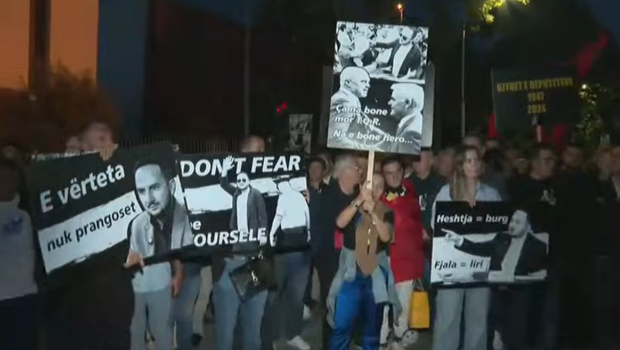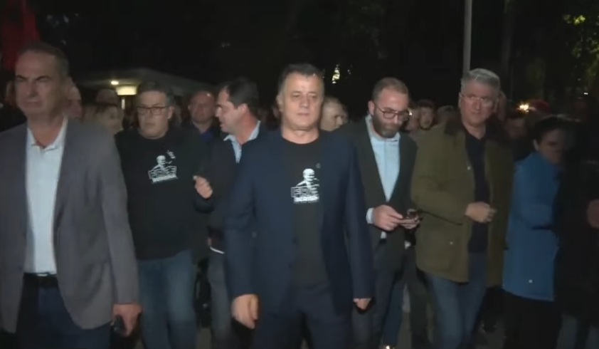 Ka nisur me 40 minuta vonesë protesta e opozitës. Flamur Noka, Gazment Bardhi, Edi Paloka, Oerd Bylykbashi, Agron Gjekmarkaj dhe të tjerë kanë prirë marshimin, teksa ndiqen nga militantët që ishin mbledhur në selinë e PD.