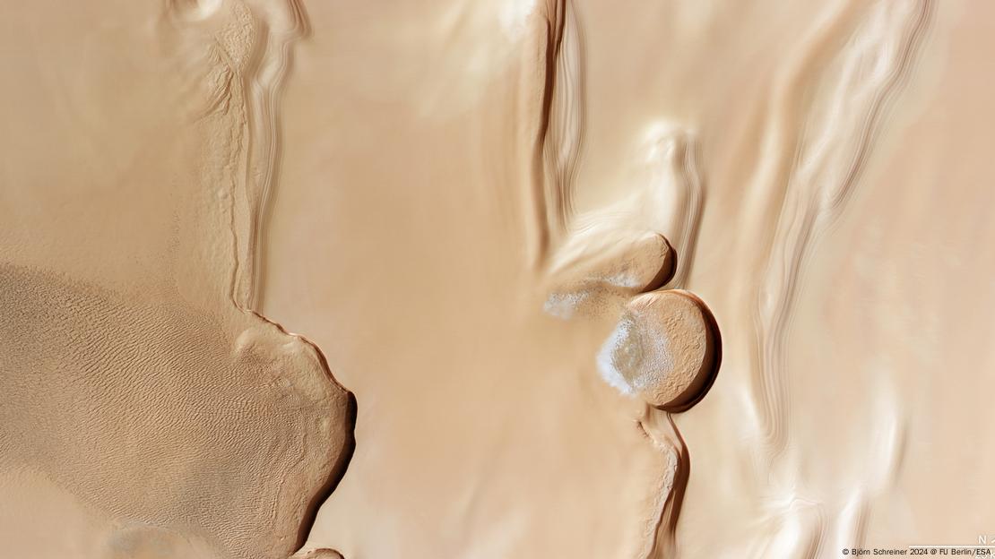 Studimet në pjesën polare me akull në Planetin e Kuq kanë sugjeruar gjithashtu se uji i lëngshëm mund të ekzistojë nën sipërfaqen e ftohtë, por një studim i fundit çon në përfundimin se mund të ketë pasur keqinterpretime në matje.