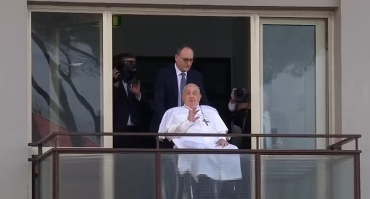 ROMË– Këtë të diel të 23 Marsit, Papa Françesku është shfaqur në ballkonin e spitalit në Romë për herë të parë që kur u shtrua në 14 Shkurt.