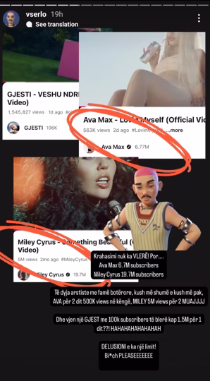 Nëpërmjet një postimi në InstaStory, Vserlo ironizoi dhe akuzoi për manipulim me klikimet, duke e krahasuar fenomenin me artistë botërorë si Miley Cyrus dhe Ava Max. Ai e quajti suksesin e Gjestit “të fabrikuar”, duke shtuar: