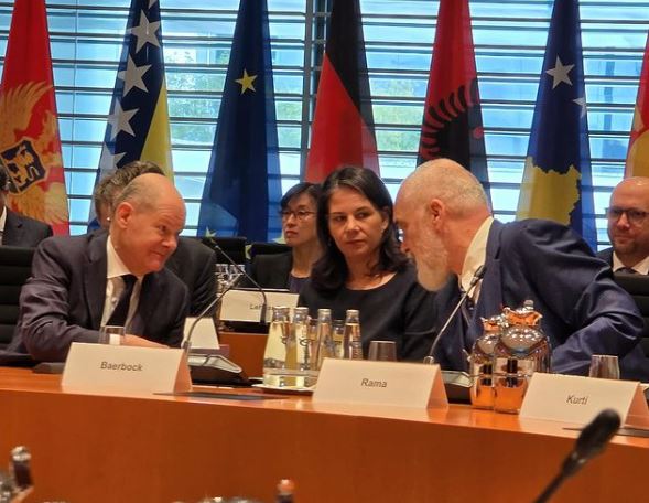 BERLIN– Kryeministri i Shqipërisë, Edi Rama sot përmes një fotoje të publikuar në Instagram nga samiti i Procesit të Berlinit, shfaqet krah kancelarit Olaf Scholz dhe ministres së jashtme gjermane, Annalena Baerbock.