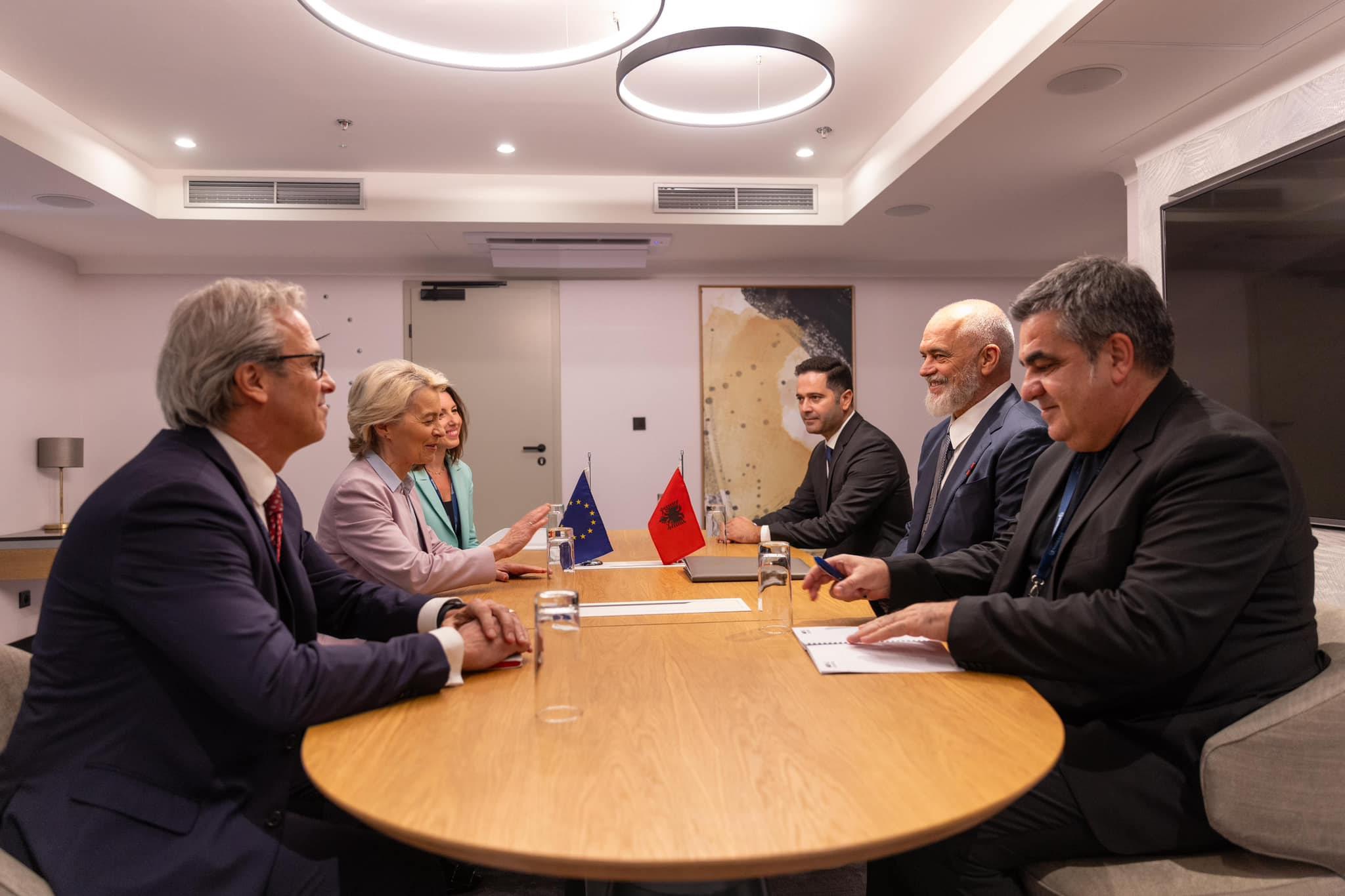 “Pragë – Me Ursula von der Leyen, Presidenten e saporizgjedhur të Komisionit Europian, për piketat e rrugës sonë të përbashkët europiane”, shkruan Rama në rrjetet sociale.