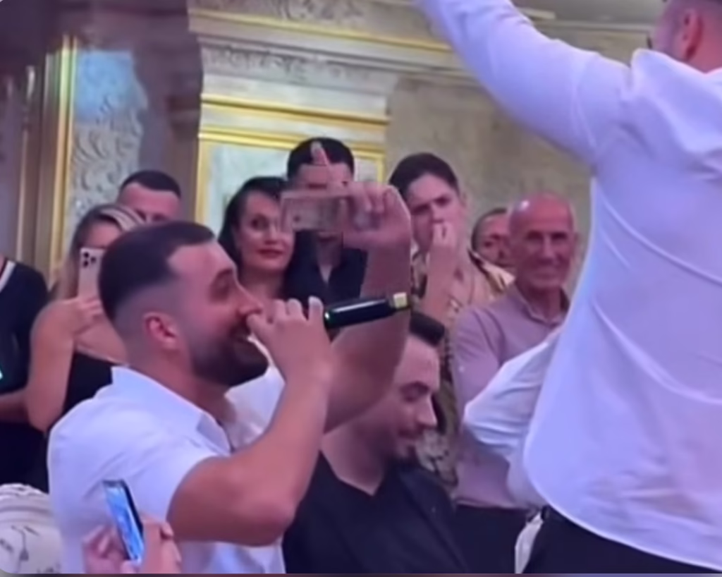 Dasmorët e tjerë u grumbulluan rreth këngëtarit dhe djemve të politikani, duke shijuar momentin dhe duke regjistruar pamjet me celularë.