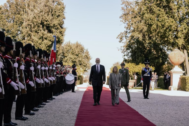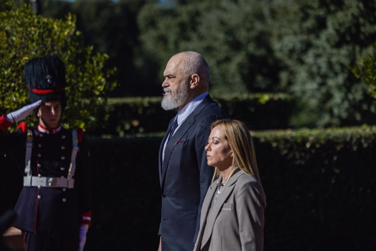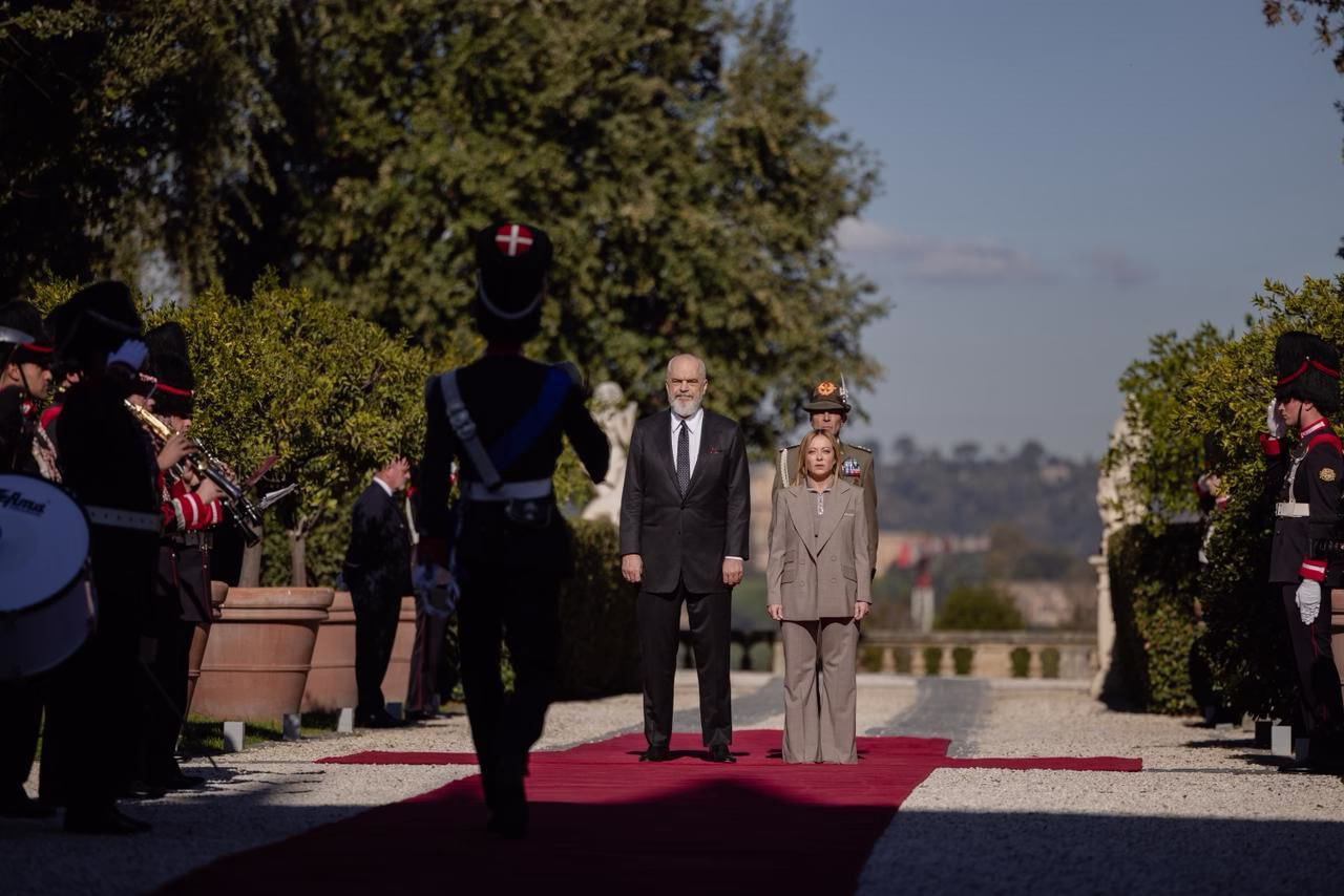 ROMË– Kryeministri Edi Rama mesditën e kësaj të enjteje është pritur me ceremoni zyrtare në Romë nga homologia e tij italiane Giorgia Meloni. Vizita e Ramës në Romë vjen në kuadër të Samitit të parë Ndërqeveritar Itali-Shqipëri. Sot për herë të pare do të mbahet mbledhja e  përbashkët mes qeverisë shqiptare dhe asaj italiane në Romë, mbledhje e cila shënon dhe nivelin më të lartë të bashkëpunimit mes dy shteteve.