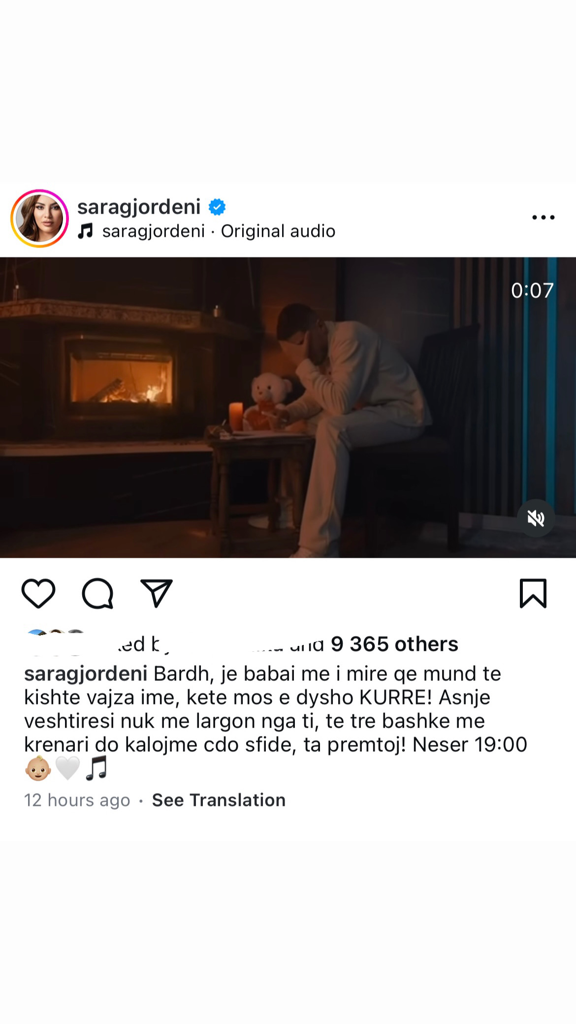 Gjithashtu një postim ka pasur edhe nga partnerja e tij, Sara Gjordeni, teksa ish-banorja e BBVAL3,  ka ndarë një pjesë tepër të shkurtër të këngës teksa i ka dedikuar sy fjalë zemre dhe emocionuese Bardhit.