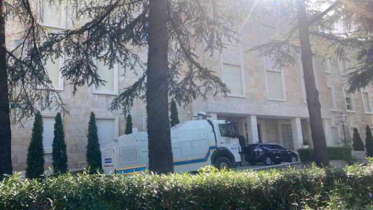Dy autobote me ujë janë pozicionuar jashtë ambienteve të kryeministrisë, ndërsa dyert e godinës janë blinduar.