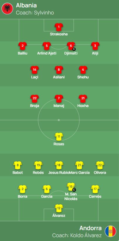 Ndërkohë në sulm nuk është asnjë nga titullarët e ndeshjes me Anglinë, pasi në krahë janë Hoxha dhe Broja, me Manajn në qendër të sulmit.