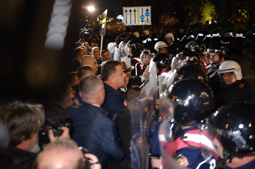 Këtu mund të shihni disa pamje në foto të momenteve kur nisi përplasja e deptuetëve të PD dhe qytetarëve me kordonin e policisë përpara Kryeministrisë. Më pas u hodh molotov drejt godinës.