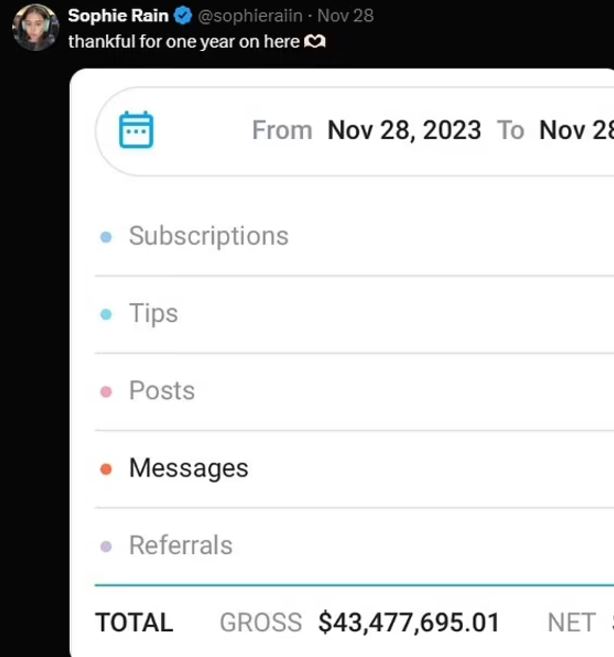 Sofi Rein, e njohur si modele dhe influencuese npër rrjet, së fundmi ka publikuar fitimet e saj gjatë 2024 nëpërmjet platformës me pullë të kuqe, “OnlyFans”.